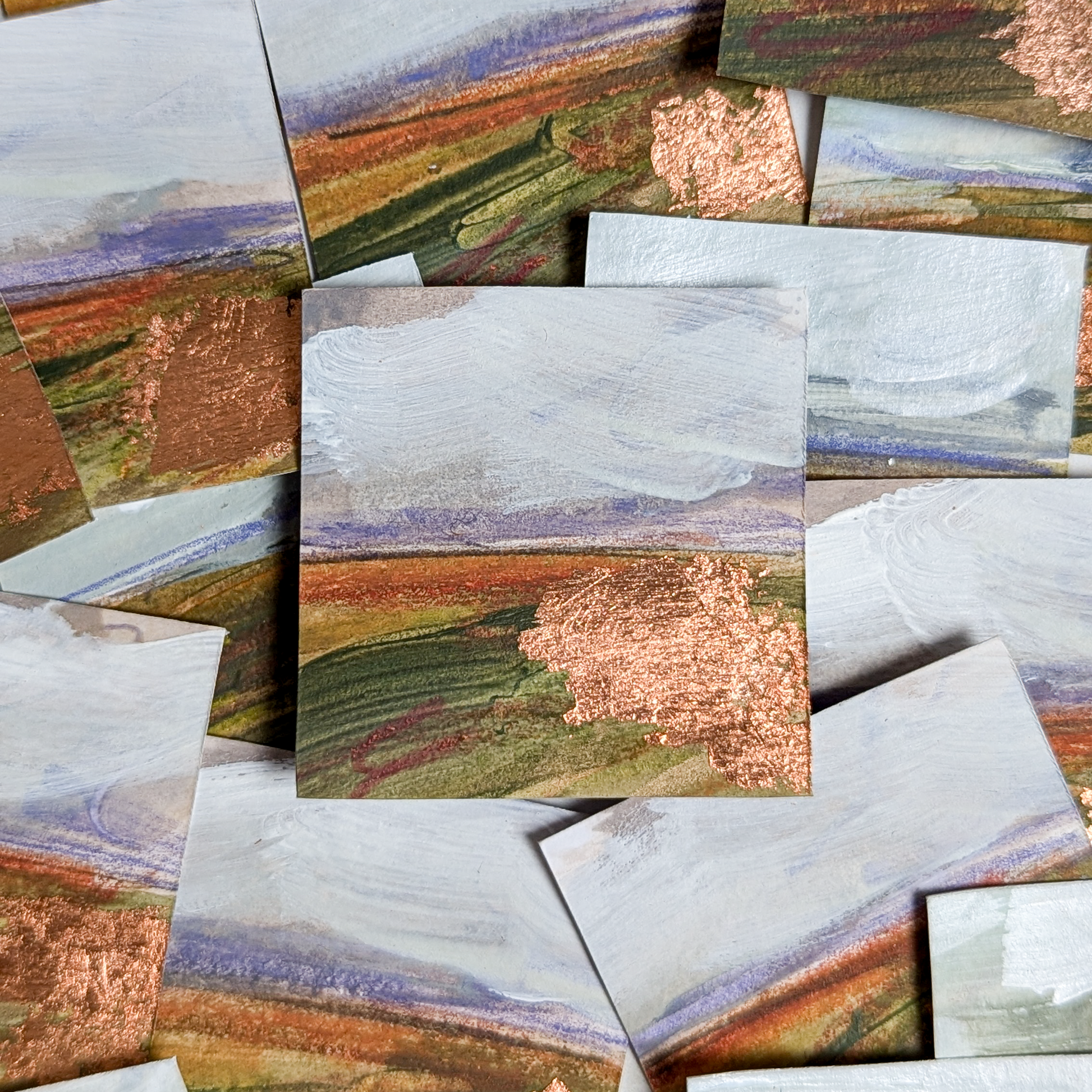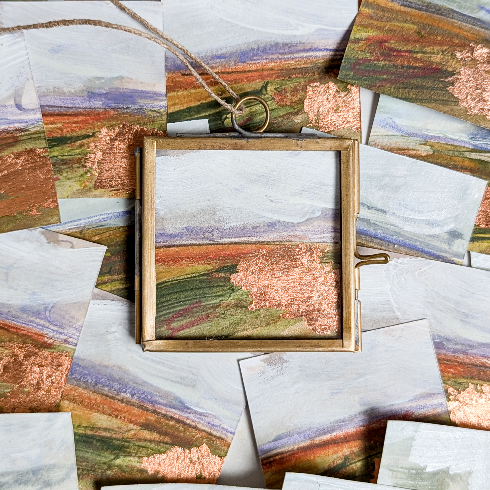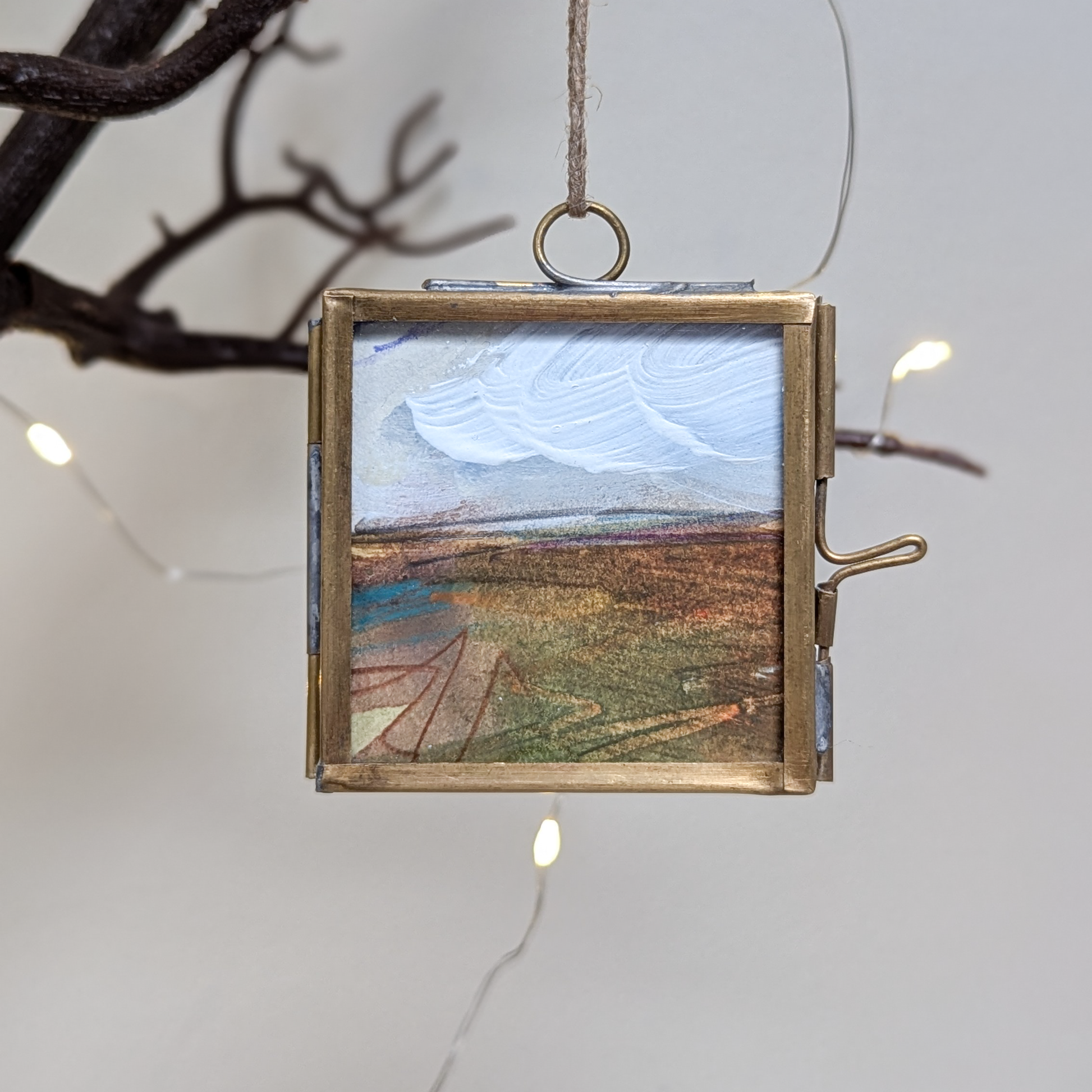 I'm so excited to introduce my hand-painted Christmas decorations. These special ornaments are my usual abstract landscape paintings in miniature! Ready to hang on your tree.