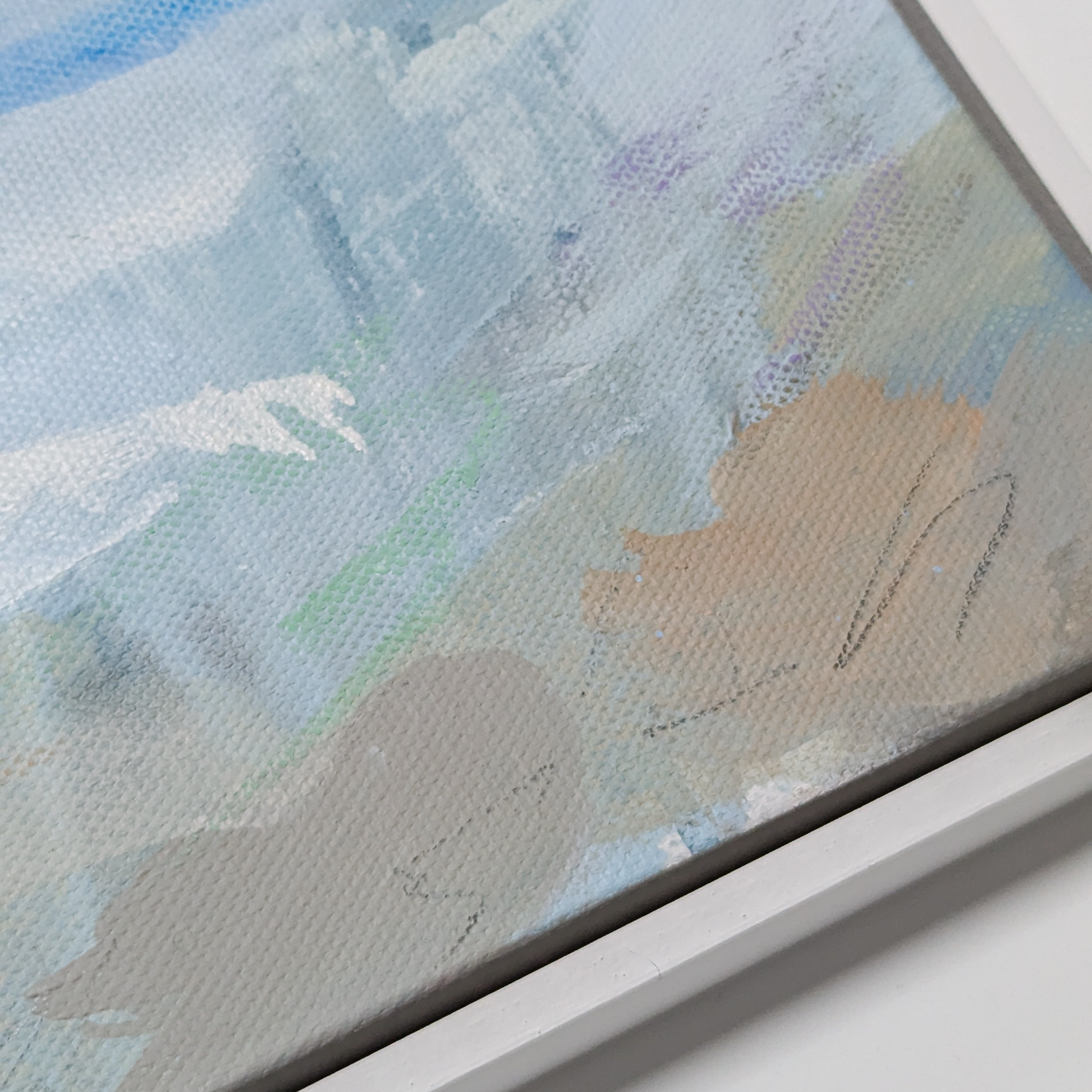 About this Painting: Breaking Through the Rain captures that uplifting moment when the sun begins to shine through a grey, rainy sky. The soft interplay of light and shadow reflects the calm and hope that follow a storm.