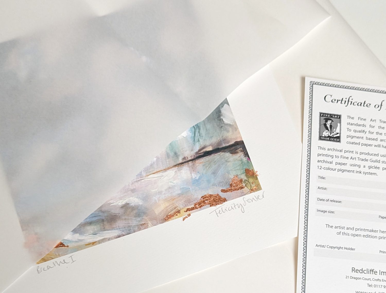 Add an extra bit of magic by ordering a hand-finished print. Felicity meticulously adds textured strokes of paint by hand, finishing with delicate copper leaf details, making every print unique and one-of-a-kind.