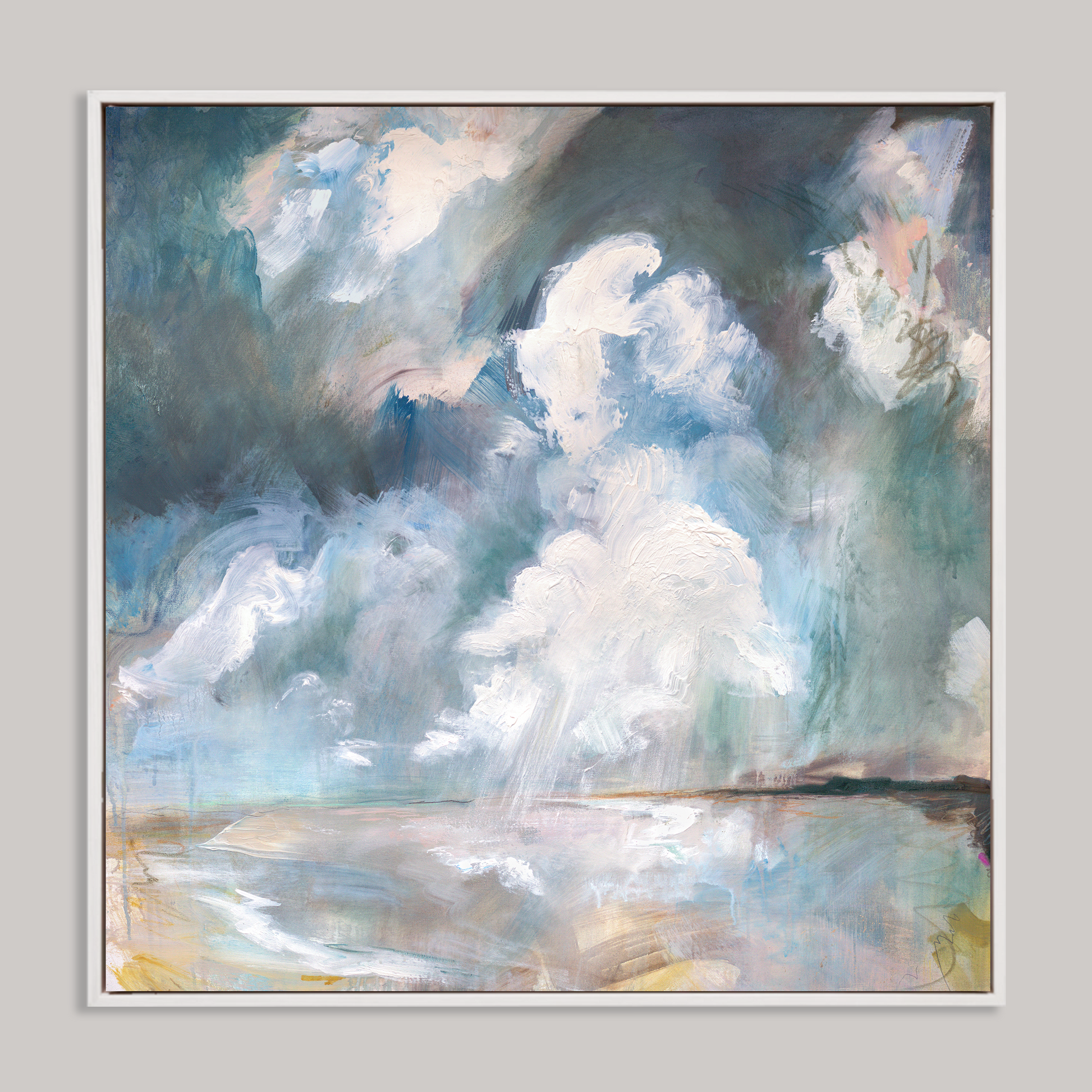 Each piece in the Breathe collection captures the dual sense of calm and energy I experience when I stand on the Welsh coastline - a place I return to time and time to again to feel connected to nature, to my family, and to myself. I hope these paintings inspire you to pause and take a breath; to hear the whistling wind and feel the spray of the sea; to breathe in the calmness of nature, in order to re-energise. A grounding beacon of serenity, hanging in your own home.