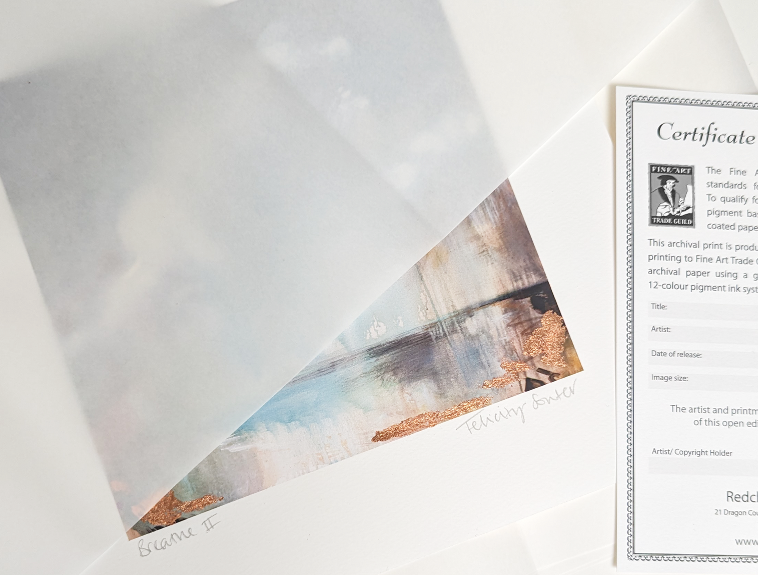 Add an extra bit of magic by ordering a hand-finished print. Felicity meticulously adds textured strokes of paint by hand, finishing with delicate copper leaf details, making every print unique and one-of-a-kind.