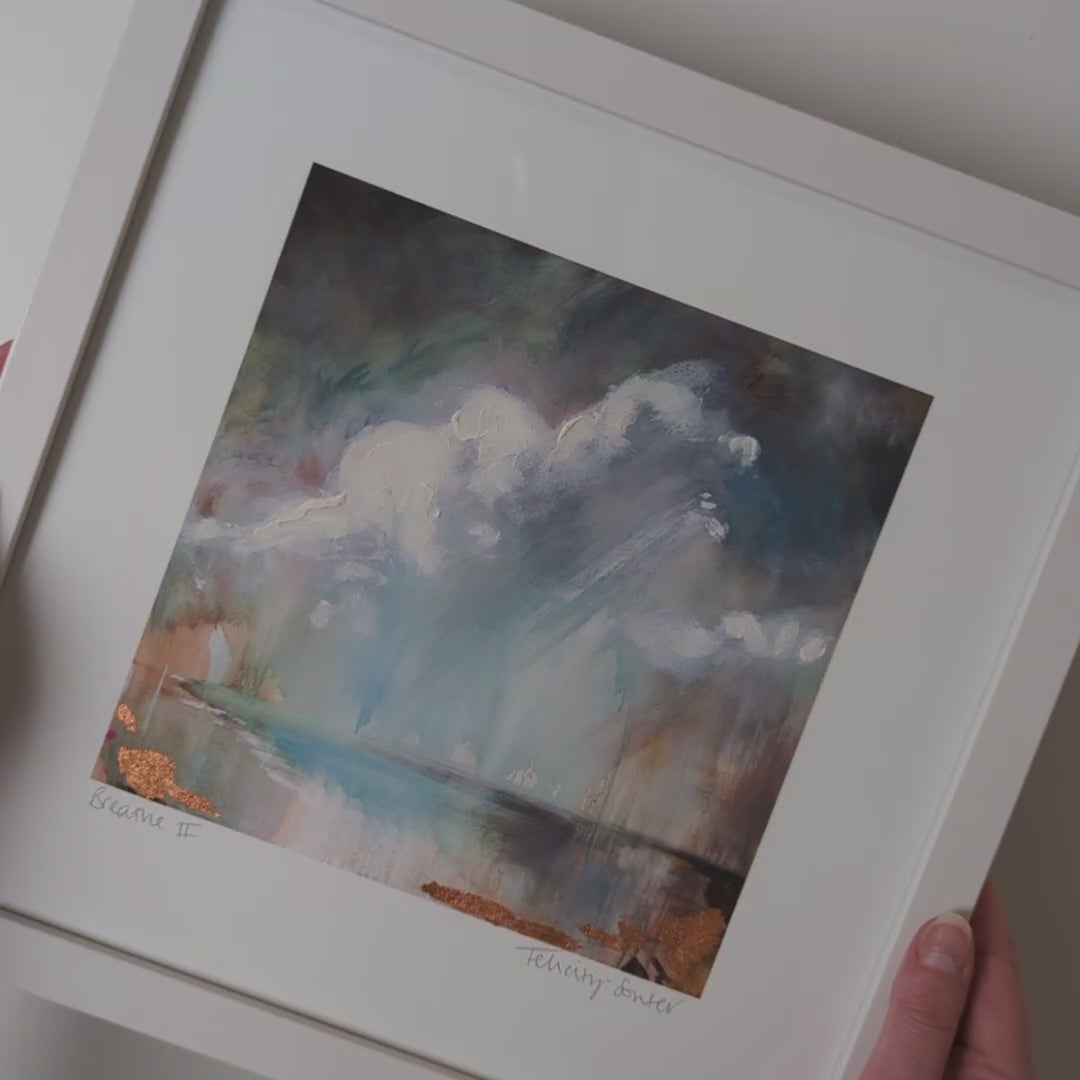 Each piece in the Breathe collection captures the dual sense of calm and energy I experience when I stand on the Welsh coastline - a place I return to time and time to again to feel connected to nature, to my family, and to myself. I hope these paintings inspire you to pause and take a breath; to hear the whistling wind and feel the spray of the sea; to breathe in the calmness of nature, in order to re-energise. A grounding beacon of serenity, hanging in your own home.