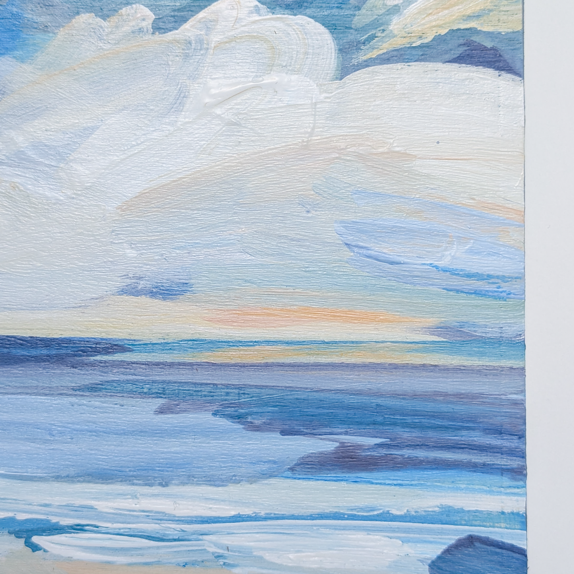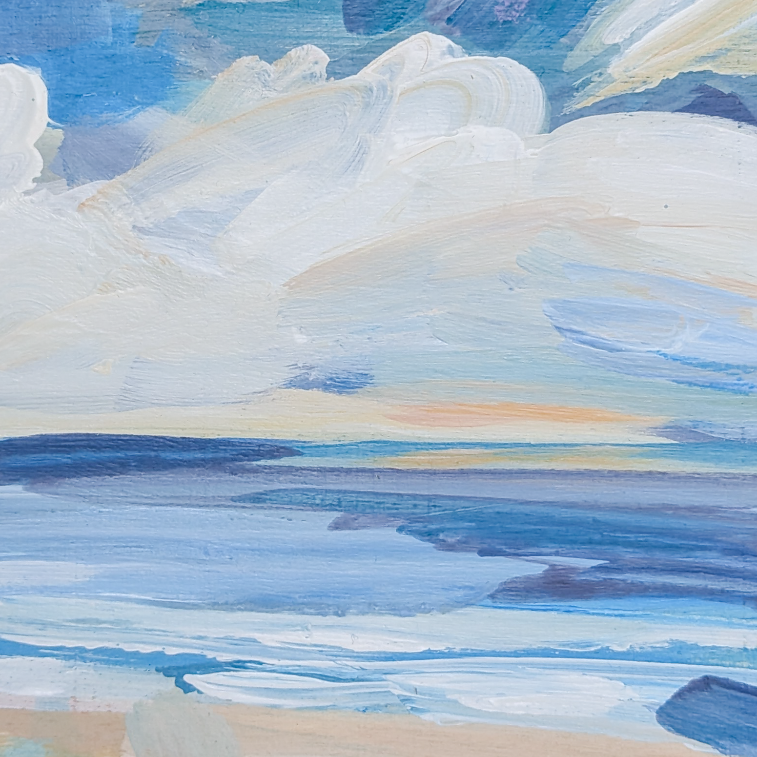 About this Painting: This piece is a reminder to pause and celebrate the beauty that surrounds us—the shifting clouds, the gentle light, the calm expanse of sea and sky. It speaks to those moments when nature reminds us that there is still so much wonder to be found, if only we take the time to see it. This series carries a quiet promise: that the best is yet to come, and each day holds the possibility of something extraordinary.