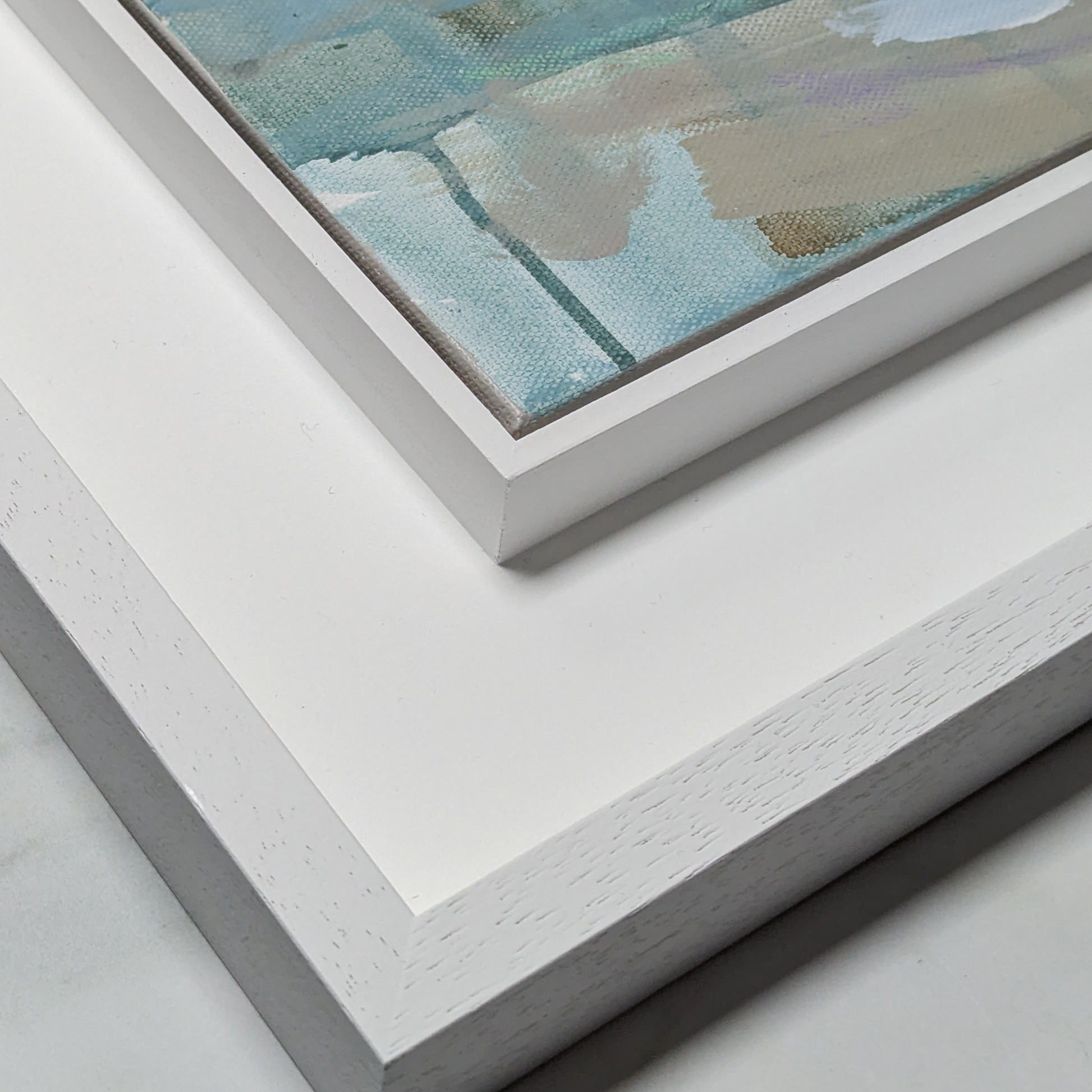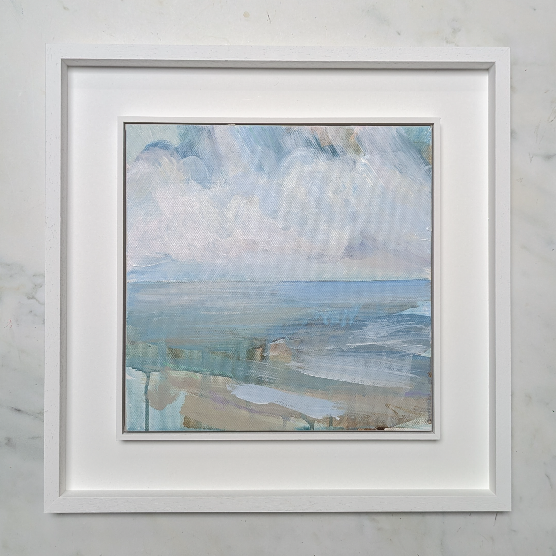 Framed in white wooden St Ives style frame