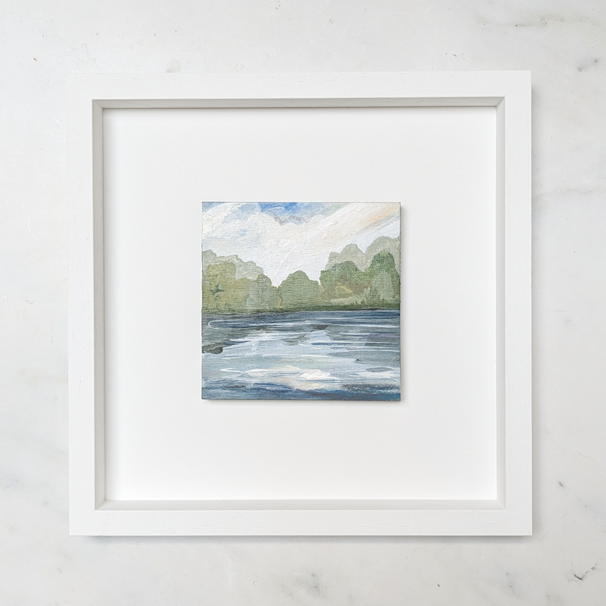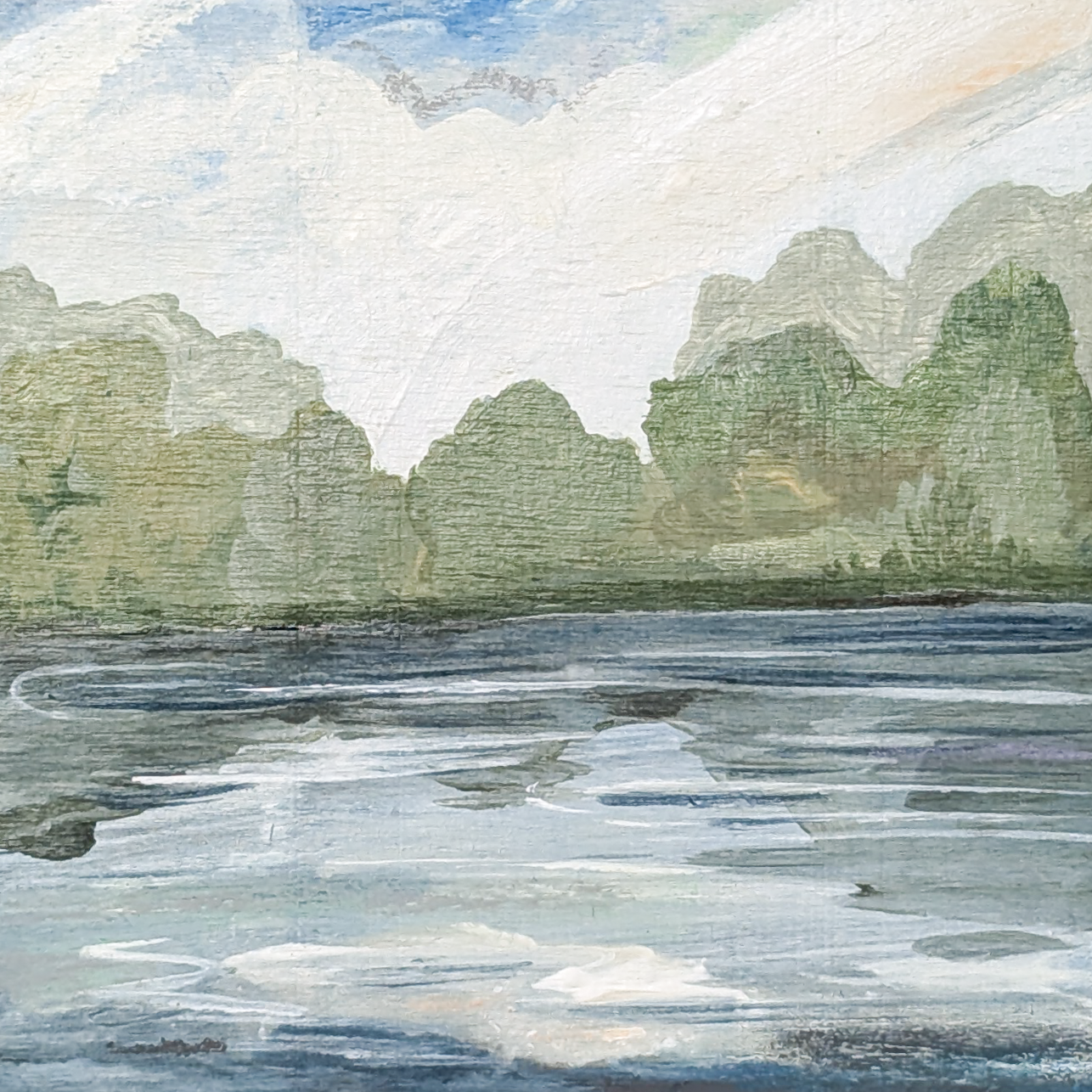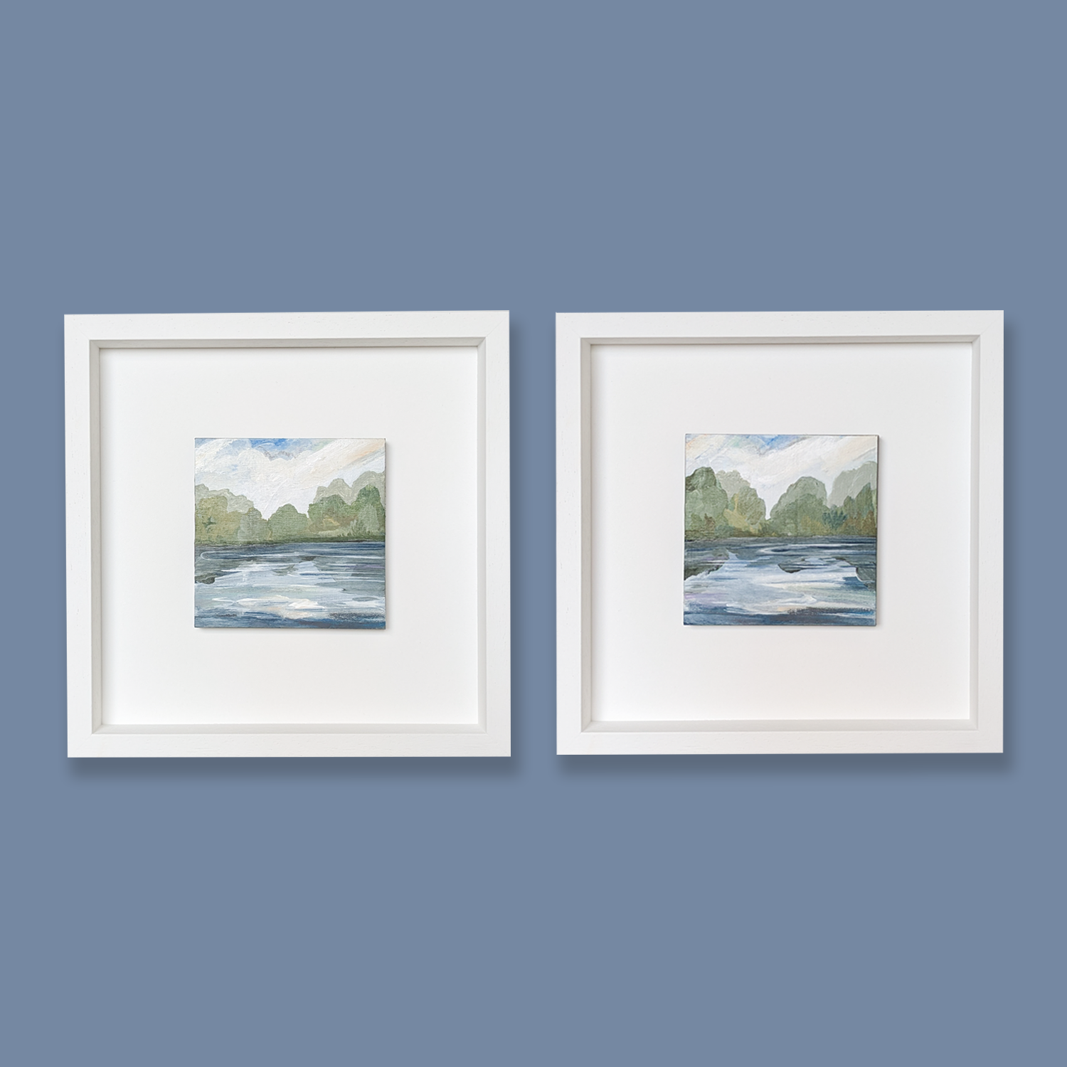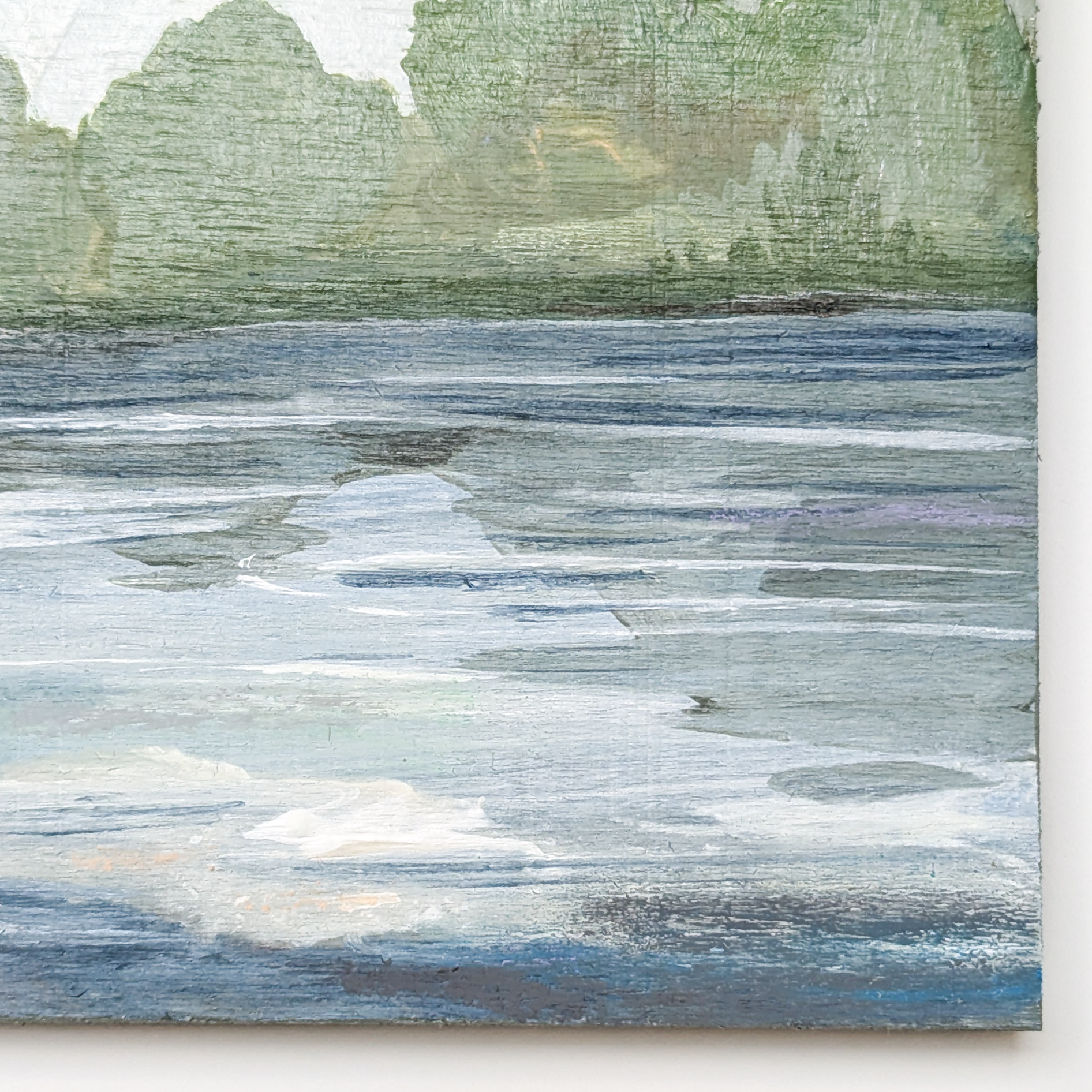 About this Painting: Cool, calm, and quietly reflective, Ripples on the Lake captures the stillness of water gently stirred by a breeze. Inspired by the great Impressionist artist Claude Monet, it captures a peaceful moment on the lake, inviting you to pause and unwind. With its soft greens, blues, and flowing brushstrokes, it brings a sense of clarity and calm to any space—a gentle reminder to slow down and notice the beautiful details all around us.