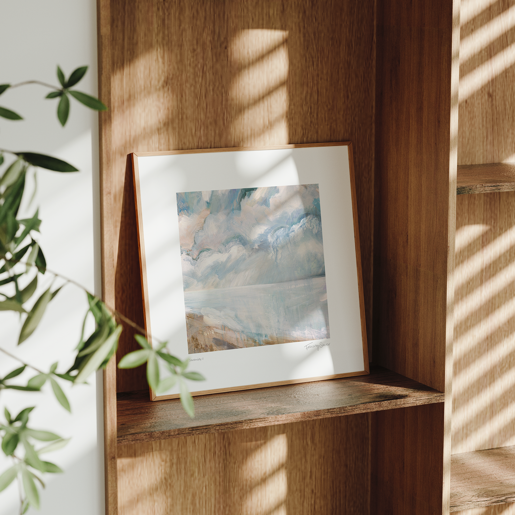 I am proud to introduce, The Serenity Collection, a captivating series of three framed seascape paintings that encapsulate the calming beauty of nature. Each artwork measures 60x60cm and is framed in a bespoke white wooden float frame to compliment the tranquil colours.