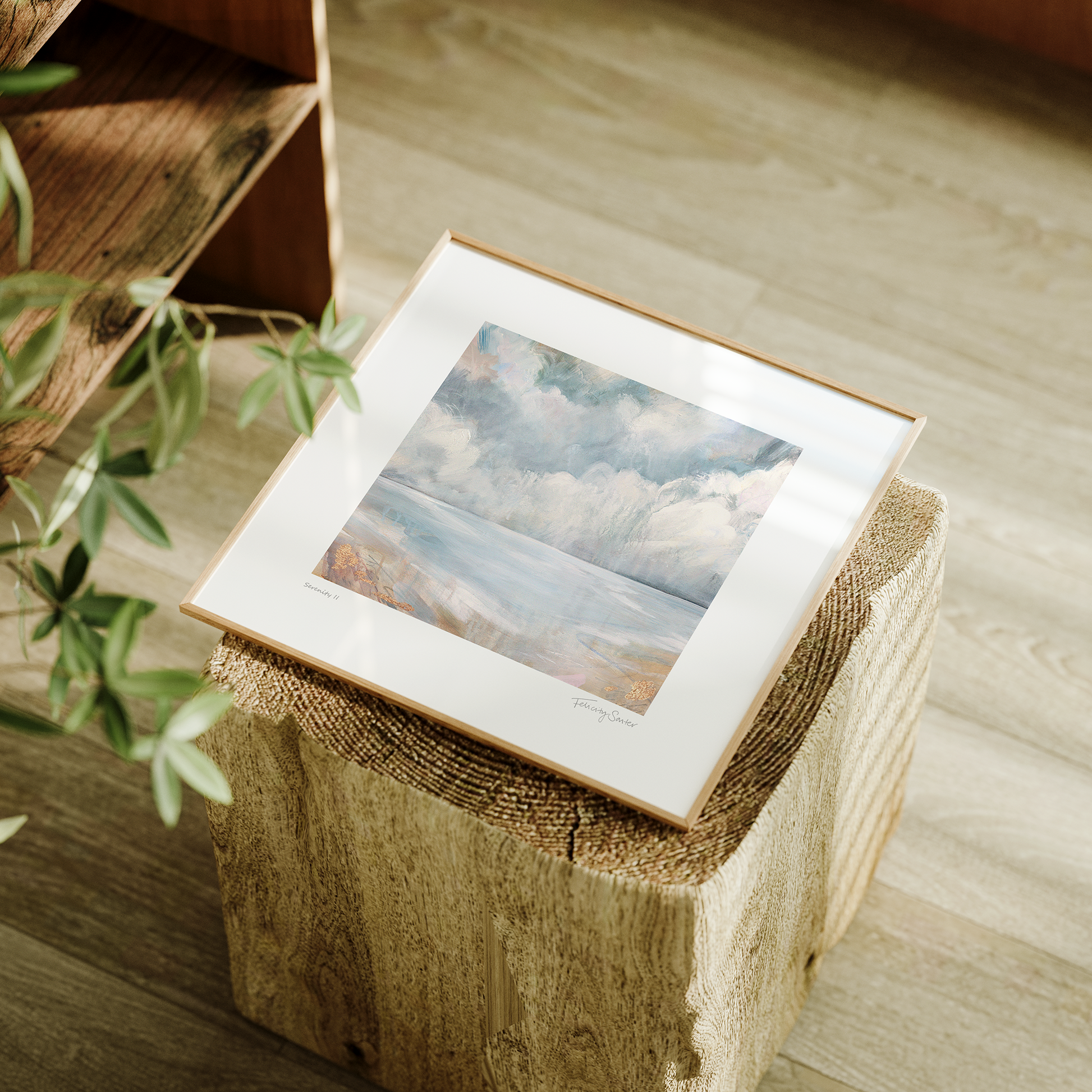 I am proud to introduce, The Serenity Collection, a captivating series of three framed seascape paintings that encapsulate the calming beauty of nature. Each artwork measures 60x60cm and is framed in a bespoke white wooden float frame to compliment the tranquil colours.
