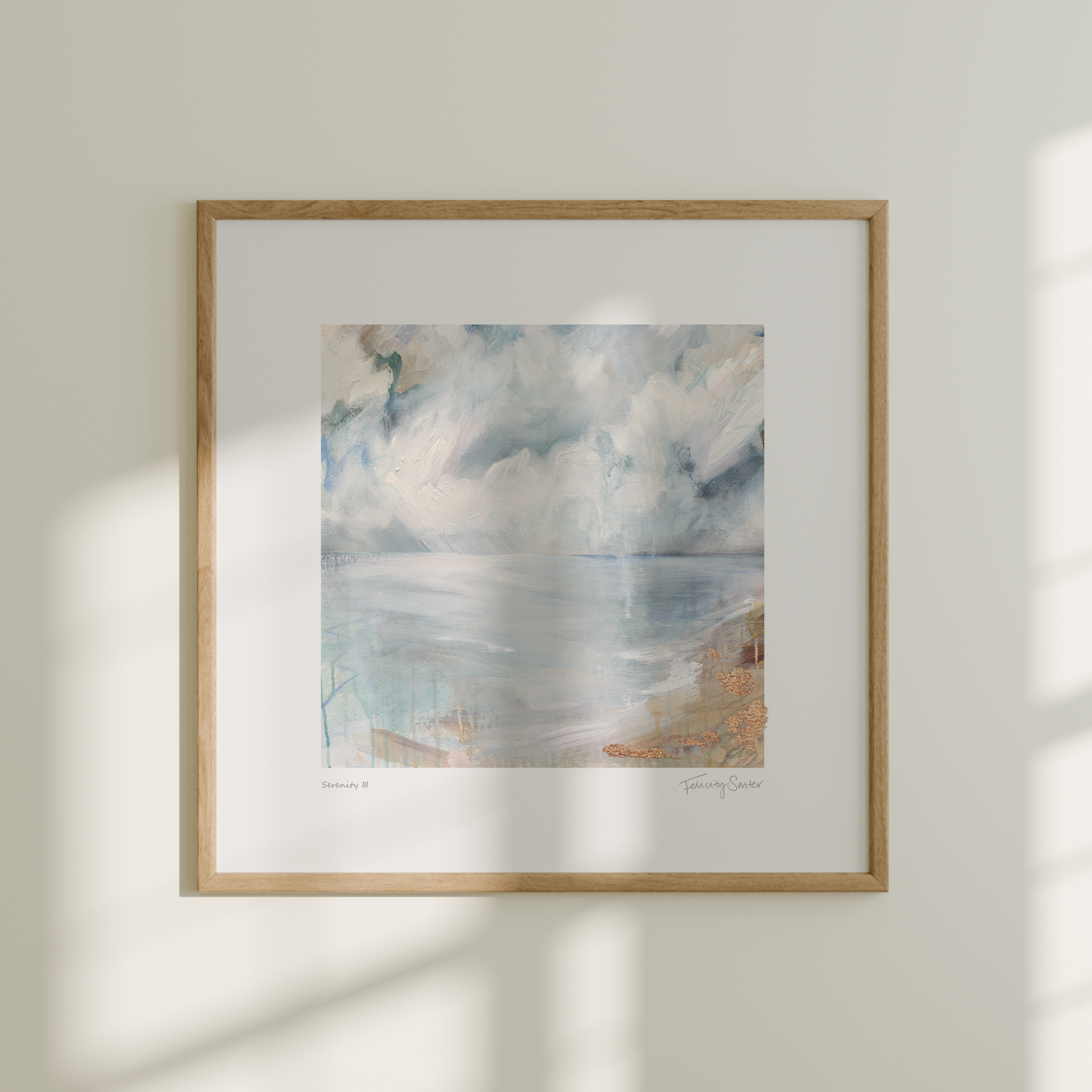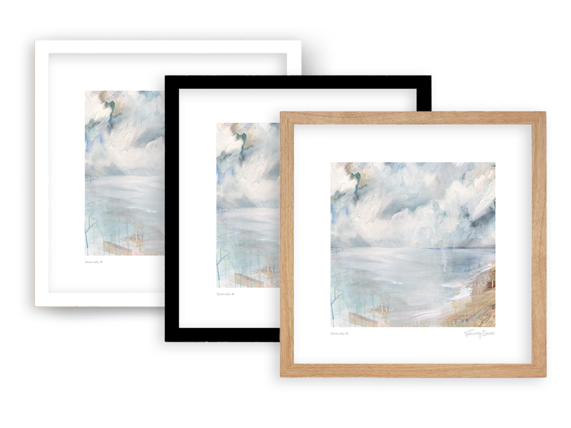 I am proud to introduce, The Serenity Collection, a captivating series of three framed seascape paintings that encapsulate the calming beauty of nature. Each artwork measures 60x60cm and is framed in a bespoke white wooden float frame to compliment the tranquil colours.