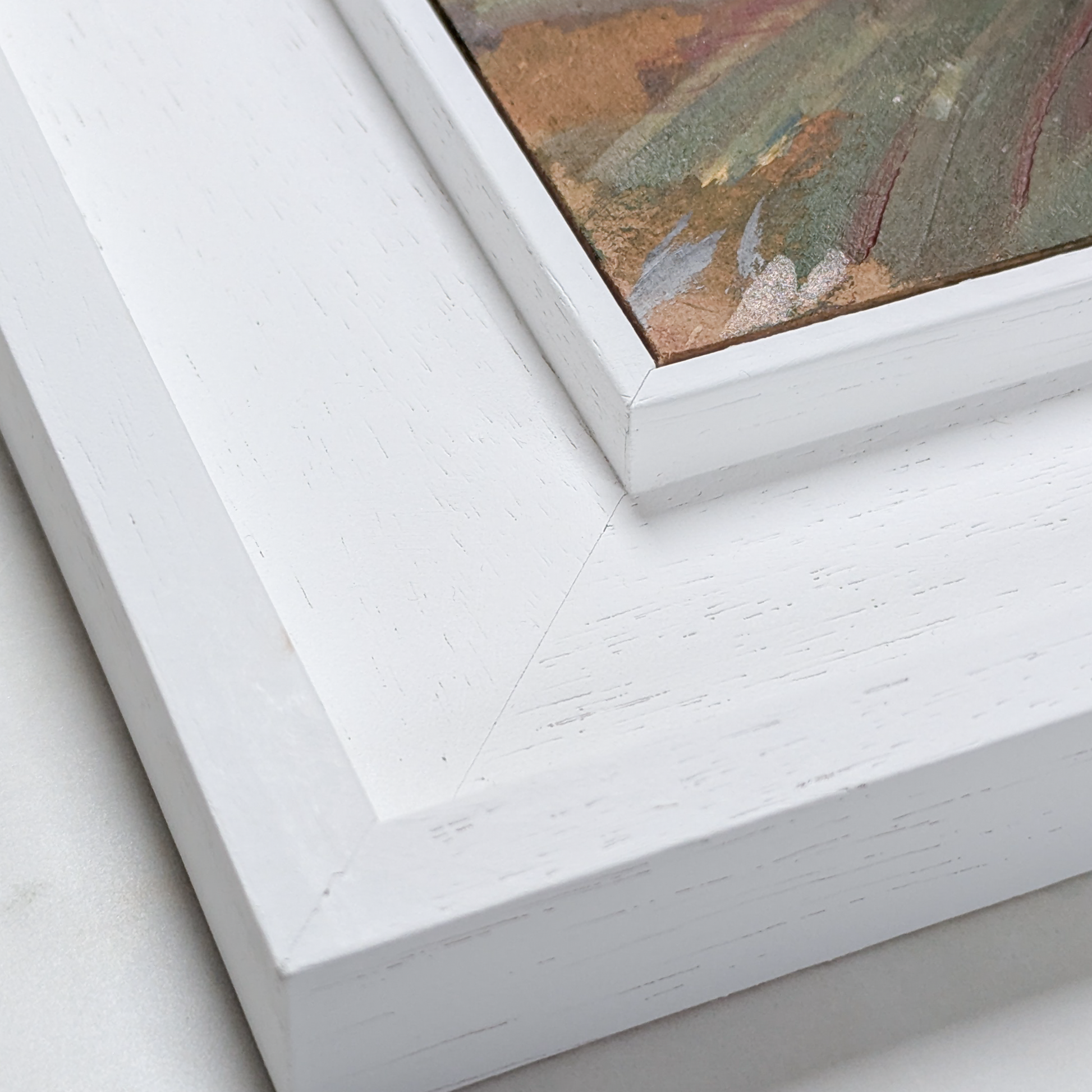 Framed in a white handmade wooden St Ives style frame