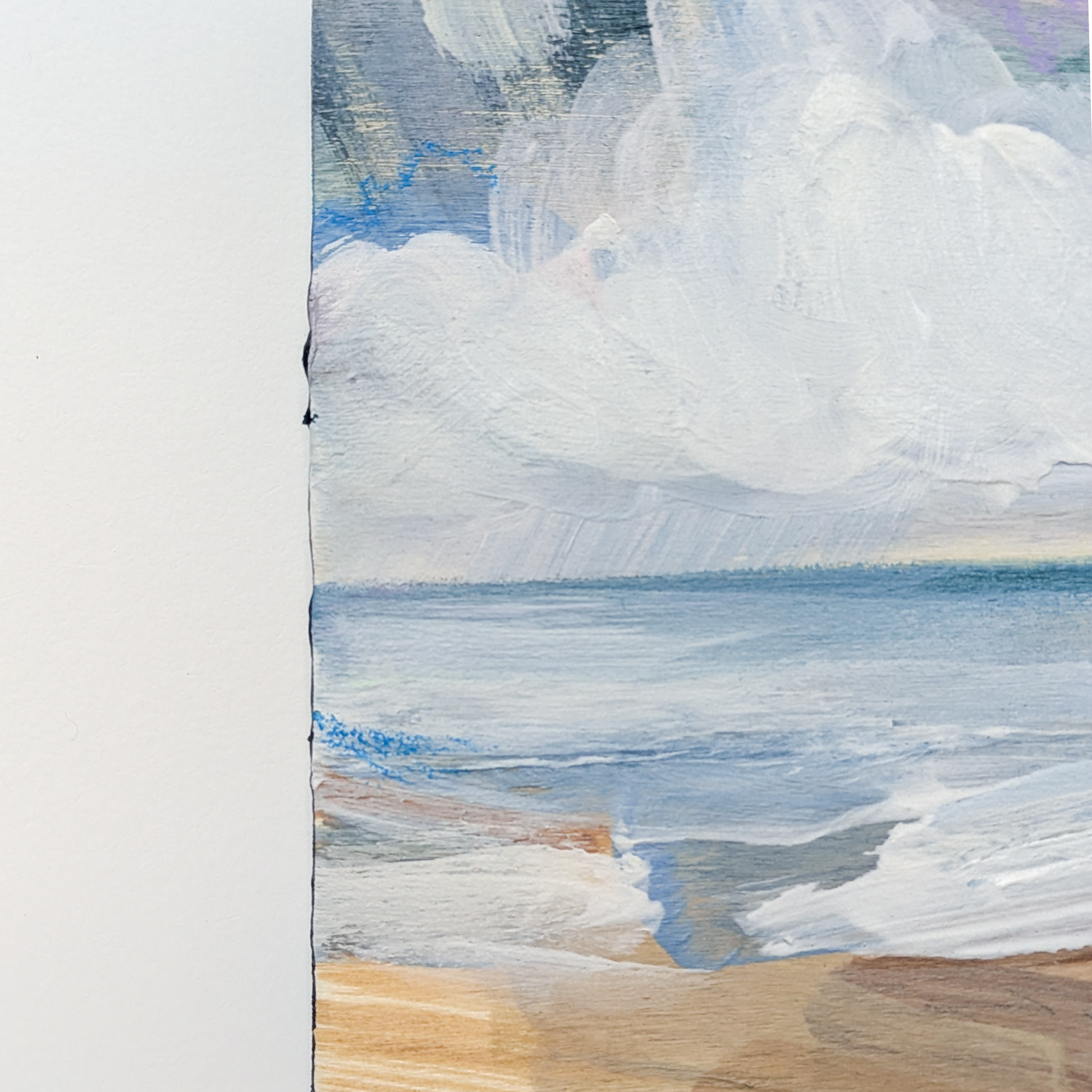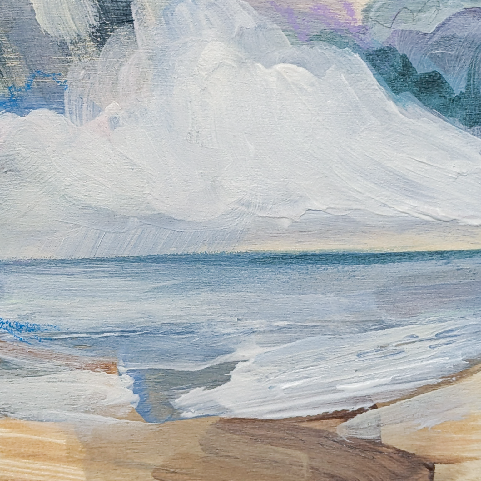About this Painting: The Fresh Sea Air was inspired by the invigorating feeling of standing by the shore, breathing in the crisp sea air. The soft colours and gentle textures reflect the refreshing calm that comes with being by the coast - a reminder of nature's ability to clear the mind and soothe the soul.