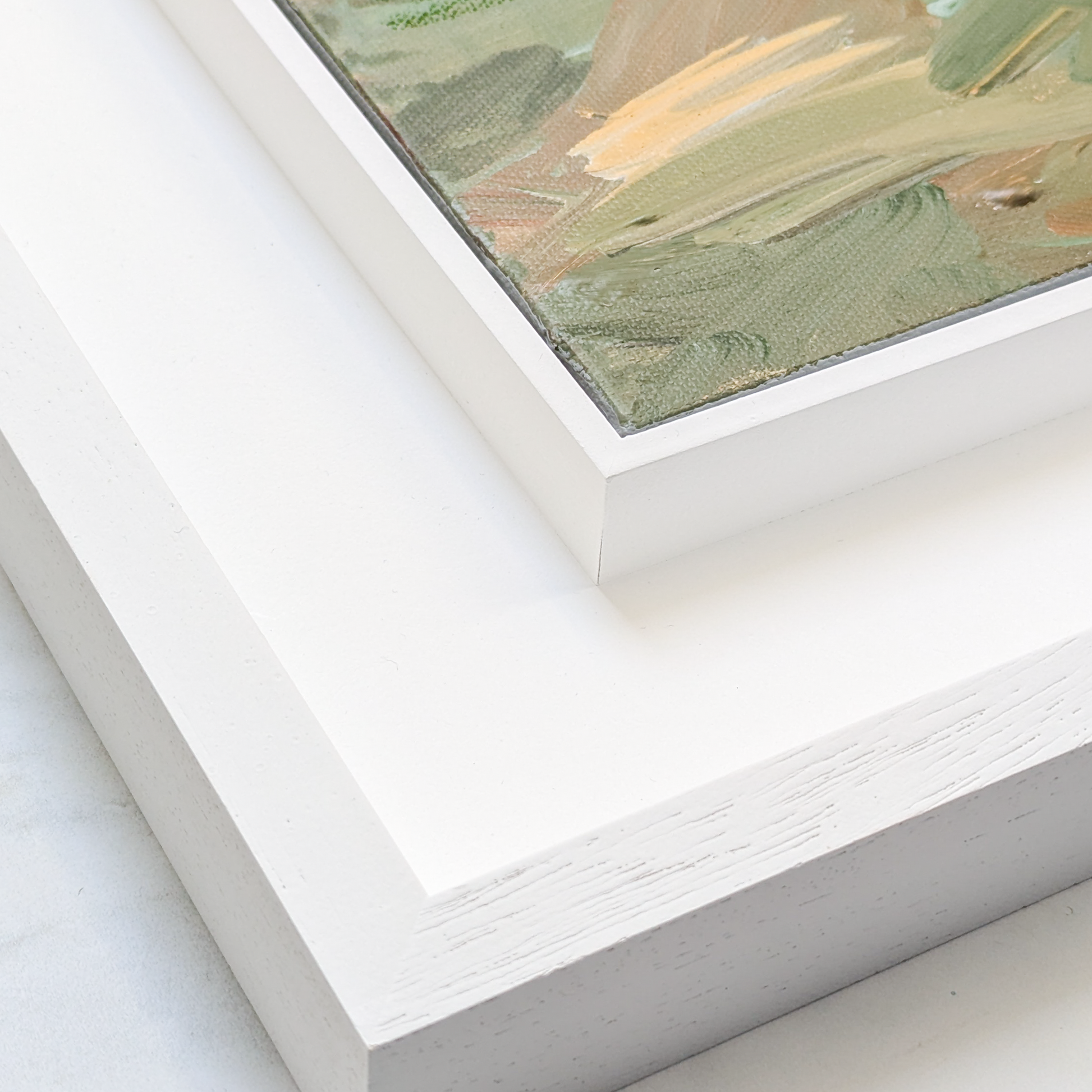 Framed in white wooden St Ives style frame