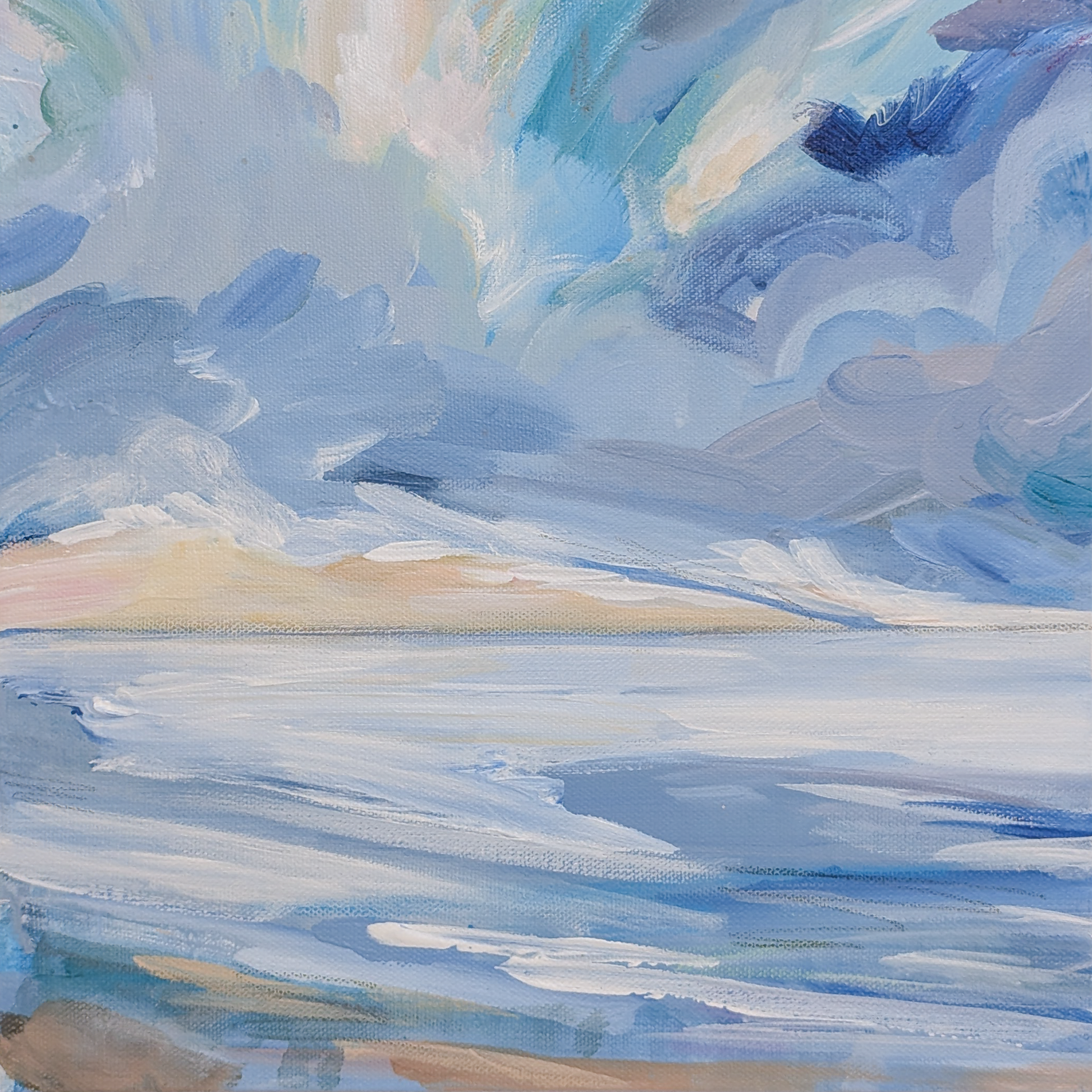 About this Painting: This piece is a reminder to pause and notice the beauty that surrounds us—the shifting clouds, the gentle light, the calm expanse of sea and sky. It speaks to those moments when nature reminds us that there is still so much wonder to be found, if only we take the time to see it. This series carries a quiet promise: that the best is yet to come, and each day holds the possibility of something extraordinary.