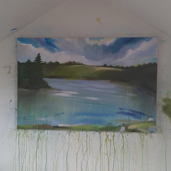 Lakesong is a collection of restorative abstract lake paintings inspired by memory and the quiet comfort of being close to water. Built through a variety of layers and a fresh, vibrant palette, each unique piece reflects a moment where the world feels calmer, time slows and you can reset in nature.