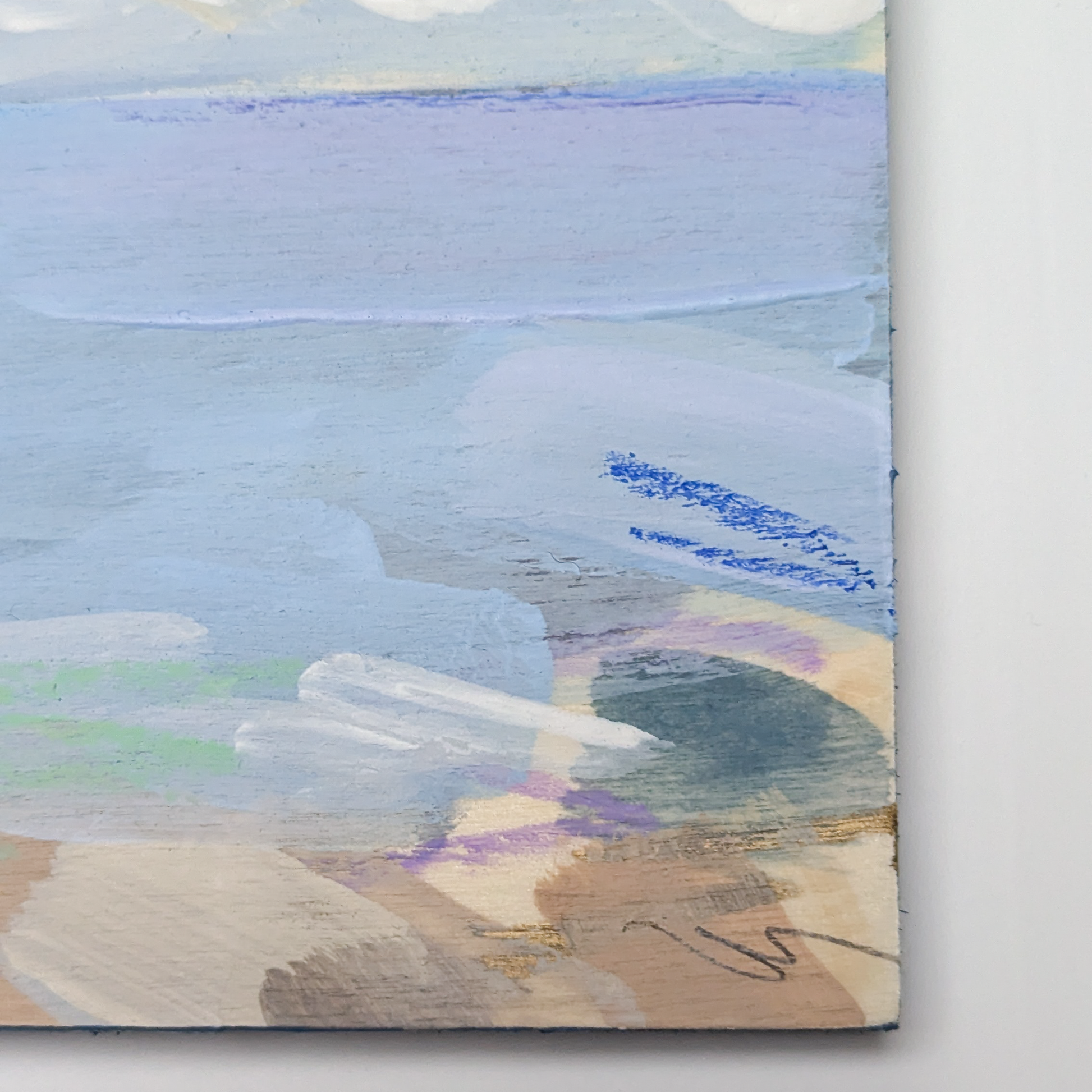 About this Painting: Waves of Lavender captures the gentle ebb and flow of the sea in a soft, lavender-hued light. The calming colours and fluid brushstrokes reflect the peaceful rhythm of the waves as they meet the shore.